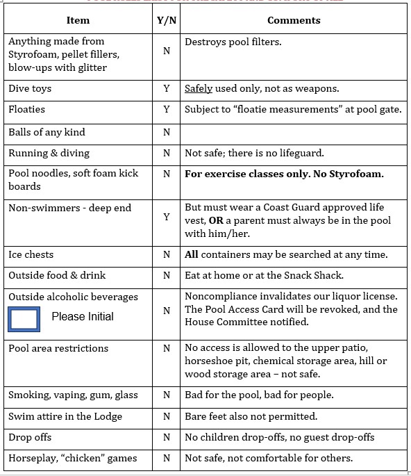 - Members and guests who do not follow the Pool Rules will be verbally warned. If another Pool Rules infraction subsequently occurs, the offending person will need to leave the pool area immediately as determined by the Pool Host. A 3rd infraction will result in the offending parties losing their pool privileges altogether until the next Elk Year.